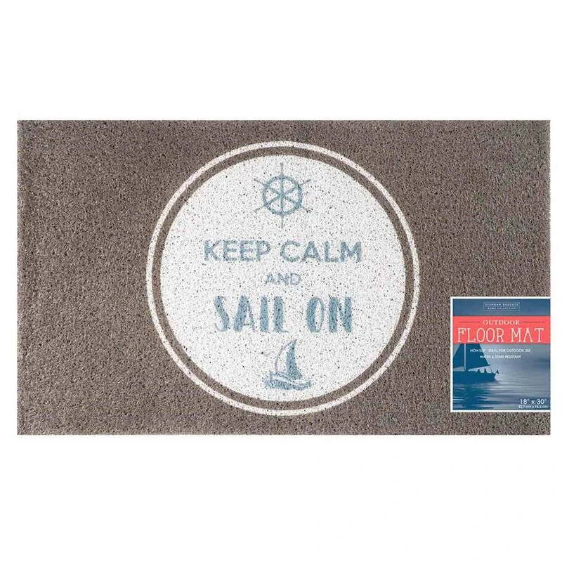 Enliven your outdoor space with this boarding theme floor mat. Made with comfort and safety in mind, this non-slip PVC coil mat is resilient and constructed with great elasticity. It is comfortable and durable enough to use with or without shoes. The spray-printed designs allow for a variety of unique custom colors and themes- find the perfect one for your boat, deck, front steps, etc.. Ideal for outdoor weather conditions. To clean, simply shake or vaccuum, spray with water and air dry.