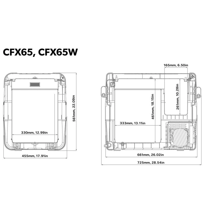 The CFX-65W features 106 can/60L capacity, deep-freezing to -7° in a single cooling compartment. Advanced compressor electronics ensure ultra-low power consumption using 100/240 VAC, 12/24 VDC, and solar power – enjoy the freedom to go off-grid!