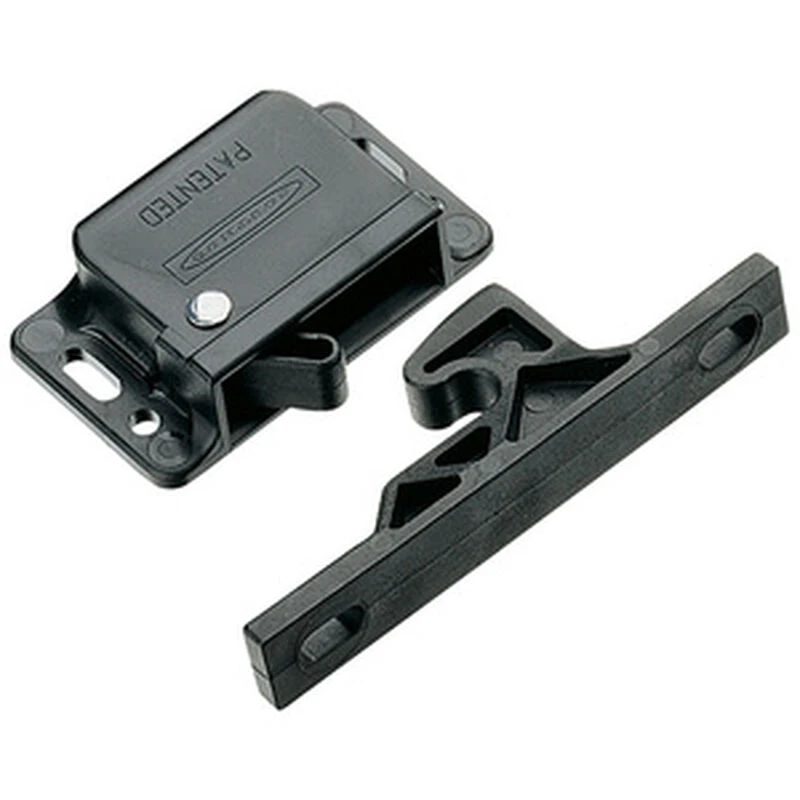 A grabber catch is a simple latch that keeps cabinetry doors closed just by pushing them shut. Southco grabber catches are compact and have spring loaded over the center hook and catch system to hold the door closed with a predetermined force. This 9.89 lb. model is ideal for larger, heavier cabinet and closet doors. The slim receiving catch mounts tight to the inside of the casing and out of the way while the hook secures to the interior face of the door. The strong White PC/ABS and glass filled nylon catch body and hook is corrosion-free and will provide a long service life. For a compact solution to keeping cabinetry doors closed, check out Southco push to close grabber catches.